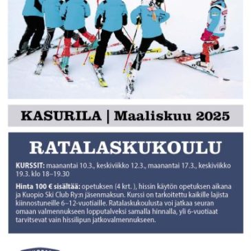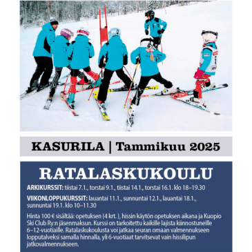 Ilmoittaudu mukaan Kuopio Ski Clubin 10.3.2025 alkavaan Ratalaskukouluun ensimmäisten joukossa ja varmista paikkasi kurssilla! Tarkemmat tiedot ja ilmoittautumiset seuraavan linkin takaa: –> https://kuopioskiclub.com/ryhmat/ratalaskukoulu/ Kuopio Ski Club Ratalaskukoulut on tarkoitettu kaikille ratalaskemisesta ja alppihiihdosta kiinnostuneille 6–12-vuotiaille⛷️ Jos lapsi tai nuori on kuitenkin aivan ensimmäistä kertaa suksilla, suosittelemme aloittamaan esim. Kasurilan hiihtokoulussa tai Verneri-kurssilla ennen ratalaskukouluun osallisumista.