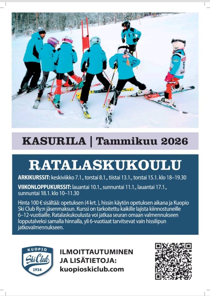 Ratalaskukoulu on tarkoitettu kaikille ratalaskemisesta ja alppihiihdosta kiinnostuneille 6–12-vuotiaille⛷️ Jos lapsi tai nuori on kuitenkin aivan ensimmäistä kertaa suksilla, suosittelemme aloittamaan esim. Kasurilan hiihtokoulussa tai Verneri-kurssilla ennen ratalaskukouluun osallisumista.